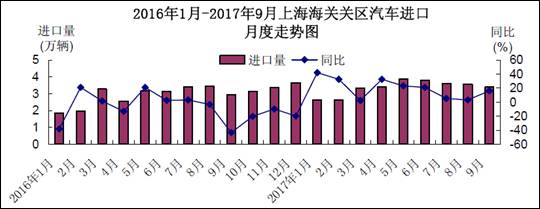 2016-2017年9月上海关区汽车进口月度走势图