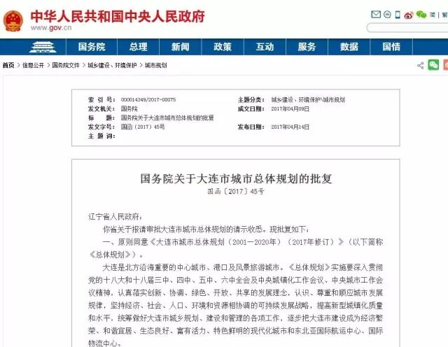 近日,《国务院关于大连市城市总体规划的批复》发布,国务院已经原则同意了——未来大连要这么建!