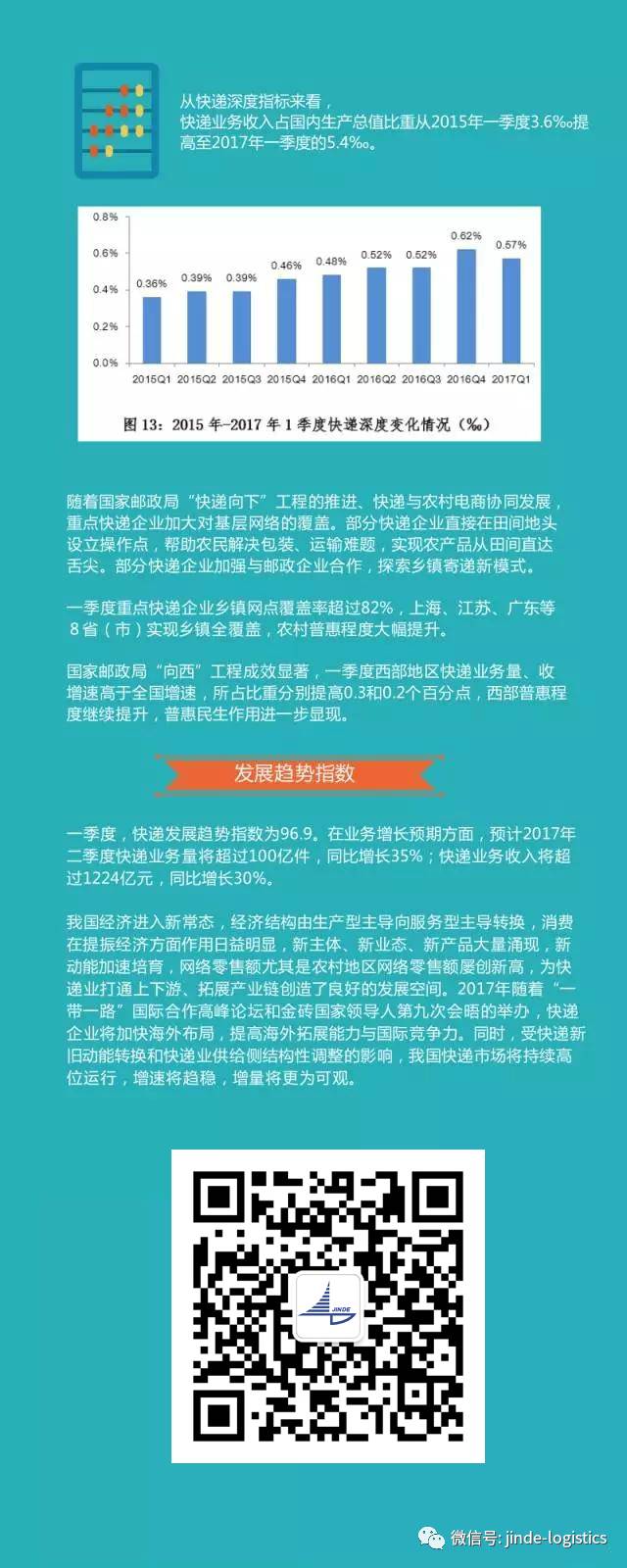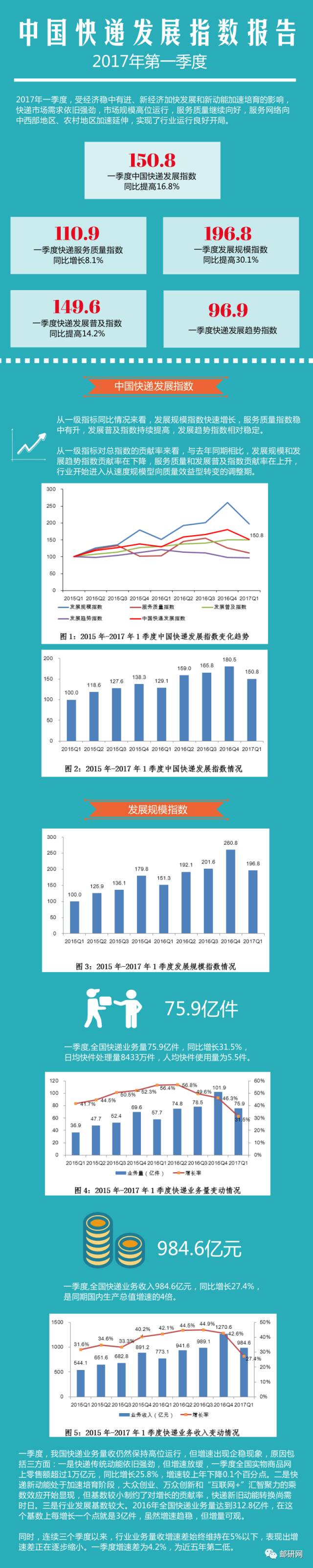 【金德物流】物流库|三张图看懂2017年一季度中国快递发展指数