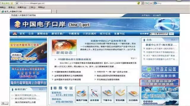 对于非联网优惠贸易协定,企业在申报进口前,应先登录中国电子口岸WEB主页(网址:http://www.chinaport.gov.cn/)的“优惠贸易协定原产地要素申报系统”板块。