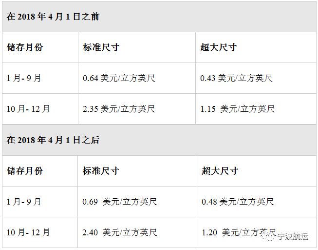 根据每月超过存储限额的每日平均库存,按月收取的超额费用将按10美元/立方英尺的价格收取。