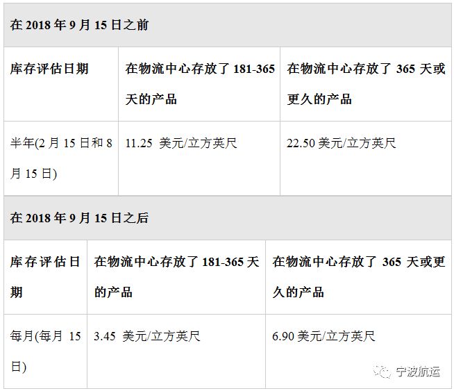 从2018年9月15日起,长期仓储费用将发生调整,并将评估日期从半年改为每月一次。