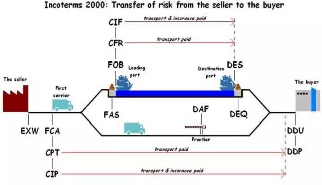 2、 三种价格术语交货点均为装运港船舷(实际为船舱内)风险点均以在装运港越过船舷时(实际为船舱内)从卖方转移至买方。