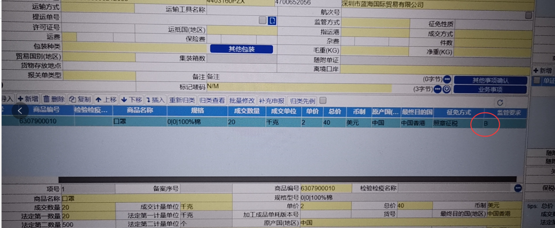 通过图片,我们可以清晰看到,系统中口罩的监管要求已改为B。 科普:法检就是报关单上面的监管条件是A(进口)或B(出口)的货物,在报关的时候必须提供商检局的通关单,也就是法定检验货物。 如果没有A或B,就不算是法定检验货物。报关时候不需要提供通关单。 监管条件为“A”类,表示须实施进境检验检疫。 监管条件为“B”类,表示须实施出境检验检疫。 不相信图片? 那就附个视频吧。 0点刚过,退单就已经来了... 昨天送到机场还没飞的,去拉回来吧... 突如其来的变化说明了什么? 部分防疫物品进出口监管条件将会超级严格! 如何面对突如其来的变化? 1、还没有报检单位编码的联系企管处做报检单位编码。 2、抓紧时间跟海关确认报检资料,做好出口前申报工作。 3、抓紧去海关办理注册登记! 实施出口法检好处至少有四点。 1、打击假冒伪劣,树立中国品牌质量影响。 2、不给反华政客以摸黑中国的口实。 3、为他国感染者生命负责,符合我国当前倡导的打造人类命运共同体的价值理念。 4、有利于树立负责任大国形象提高国际地位。 法检意味着要在海关检验后才可以出货! 检验不合格呢?不合格不仅不能出,还可能涉及罚! 医用口罩,一般贸易出口: 1、品名需填写“医用XX品牌XX型号口罩”,成交单位必须按“个” 2、营业执照 3、医疗器械生产许可证 4、医疗器械注册证 5、产品检验报告 6、发票/箱单/合同/手写报关单 7、产品说明书、标签 8、产品合格证 9、产品样品图片及外包装图片 10、附件出口医疗物资声明 医用口罩买单报关: 1、品名需填写“医用XX品牌XX型号口罩”,成交单位必须按“个” 2、营业执照 3、医疗器械生产许可证 4、医疗器械注册证 5、产品检验报告 6、发票/箱单 7、产品说明书、标签 8、产品合格证 9、产品样品图片及外包装图片 10、附件出口医疗物资声明 11、双抬头协议(买单抬头和生产销售单位双抬头协议) 上述未提及的其他医用防护物资一般贸易出口: 1、营业执照 2、医疗器械注册证 3、产品检验报告 4、发票/箱单/合同/手写报关单 5、产品说明书、标签 6、产品合格证 7、产品样品图片及外包装图片 8、医疗器械生产许可证 上述未提及的其他医用防护物资出口买单报关: 1、营业执照 2、医疗器械注册证 3、产品检验报告 4、发票/箱单/ 5、产品说明书、标签 6、产品合格证 7、产品样品图片及外包装图片 8、双抬头协议(买单抬头和生产销售单位双抬头协议) 9、医疗器械生产许可证 ***以上均为医用物资*** ***以下非医用物资*** 非医用口罩出口暂时不受目录限制,但也需要严格申报,详细见以下资料: 非医用口罩一般贸易出口: 1、品名需填写“非医用XX品牌XX型号口罩。成交单位必须按“个” 2、申报所需文件:发票/箱单/合同/手写报关单 3、产品样品图片及外包装图片 4、产品检测报告 5、产品合格证 非医用口罩出口买单报关: 1、品名需填写“非医用XX品牌XX型号口罩。成交单位必须按“个” 2、申报所需文件:发票/箱单 3、产品样品图片及外包装图片 4、产品检测报告 5、产品合格证 6、双抬头协议(买单抬头和生产销售单位双抬头协议) 注:各地区/口岸要求有所不同,具体以当地官方信息为准,本文仅供参考。